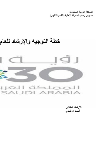 المملكة العربية السعودية مدارس رحاب المعرفة الأهلية (القسم الثانوي) خطة التوجيه والإرشاد للعام الإرشاد الطلابي أحمد الرشيدي