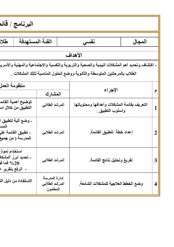 توضيح أهمية القائمة المرشد الطلابي التعريف بقائمة المشكلات وأهدافها ومحتوياتها 1