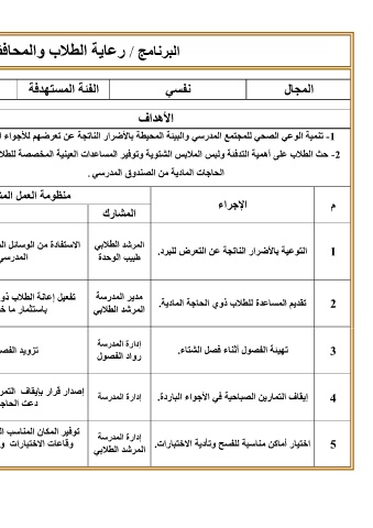 -1تنمية الوعي الصحي للمجتمع المدرسي والبيئة المحيطة بالأضرار الناتجة عن تعرضهم للأجواء ا