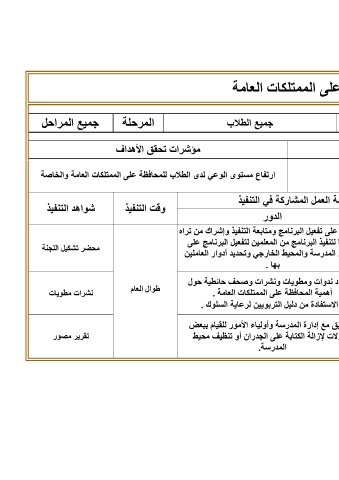ارتفاع مستوى الوعي لدى الطلاب للمحافظة على الممتلكات العامة والخاصة