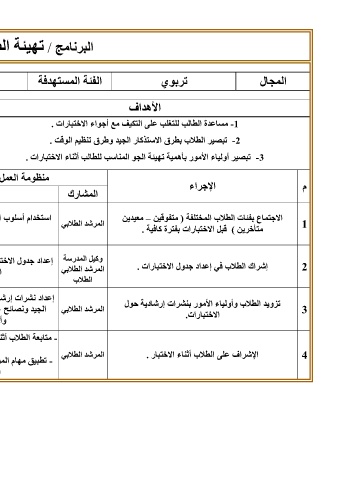 -1مساعدة الطالب للتغلب على التكيف مع أجواء الاختبارات .