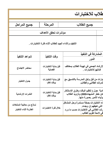 جدول الاختبار بارات من قبل وكيل المدرسة بالتنسيق مع قبل بداية الاختبارات
