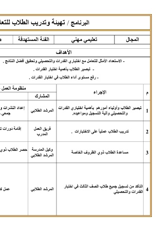البرنامج /تهيئة وتدريب الطلاب للتعا