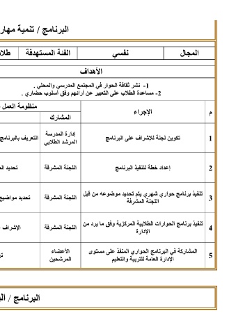 الإشراف ع اللجنة المشرفة تنفيذ برنامج الحوارات الطلابية المركزية وفق ما يرد من 4