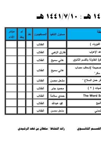 رائد انىشاط /ضهطان ته فهد انرشيدي انقطـــم انثاوــــىي