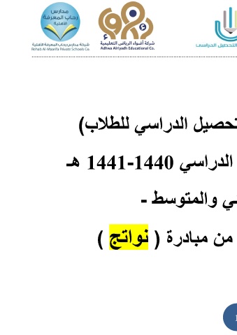 .......................................................................................................................... تحصيل الدراسي للطلاب) الدراسي 1441-1440هـ ئي والمتوسط - من مبادرة ( نواتج ) 1
