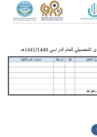 .......................................................................................................................... وى التحصيلي للعام الدراسي 1441/1440هـ اسباب عدم التنفيذ نفذ لم ينفذ ول التنفيذ د دخل الله 7