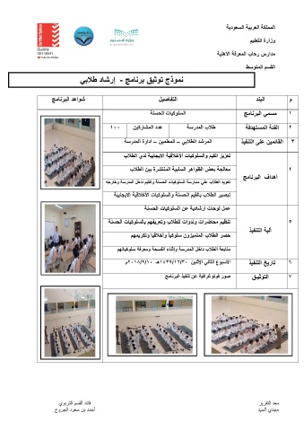 نموذج توثٌق برنامج -إرشاد طلابً