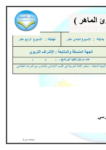 الجهة المنفذة :معلمو اللغة العربية في القسم الابتدائي بالتعاون مع المرشد الطلابي