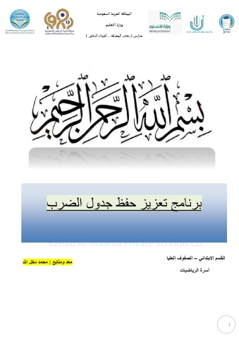 المملكة العربية السعودية وزارة التعليم مدارس ( رحاب المعرفة – اضواء الرياض ) الإشراف التربوي – أسرة الرياضيات برنامج تعزيز حفظ جدول الضرب معد ومتابع :محمد دخل الله القسم الابتدائي – الصفوف العليا أسرة الرياضيات 1
