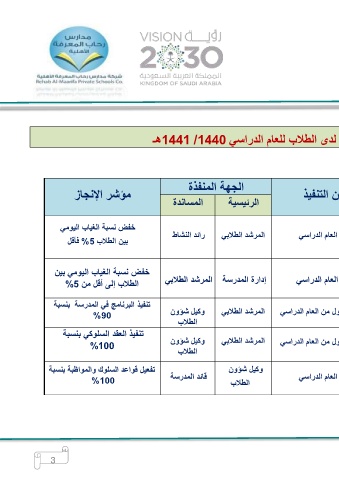 تنفيذ البرنامج في المدرسة بنسبة وكيل شؤون المرشد الطلابي ول من العام الدراسي