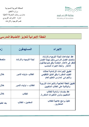 الخطة الإجرائية لتعزيز الانضباط المدرسي
