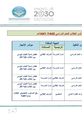 خفض نسبة الغياب اليومي إدارة المدرسة المرشد الطلابي العام الدراسي