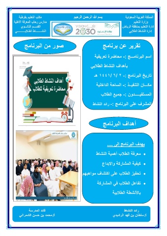 المشرف على البرنامج -:رائد النشاط