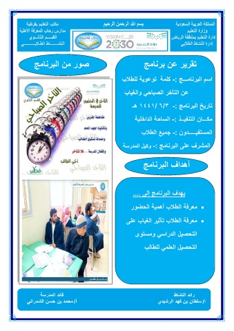 اسم البرنامـــج -:كلمة توعوية للطلاب