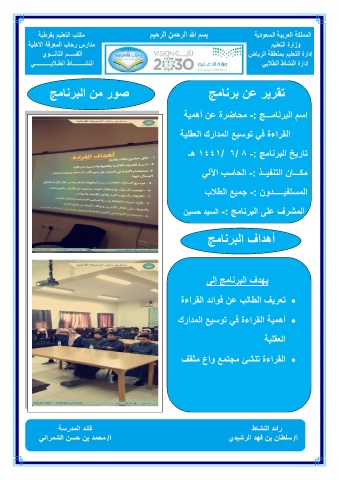 • تعريف الطالب عن فوائد القراءة