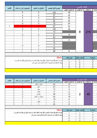 عدد الطلاب عدد الفصول عدد الحصص المطلوب