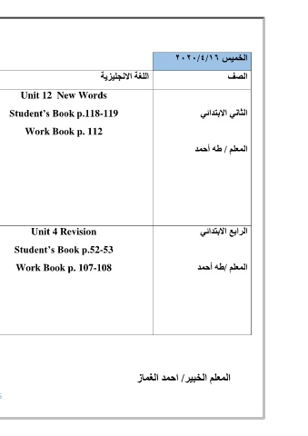 Work Book p. 112 انثاًَ الاتتذائً