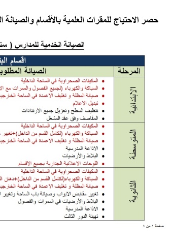 حصر الاحتياج للمقرات العلمية بالأقسام والصيانة ال