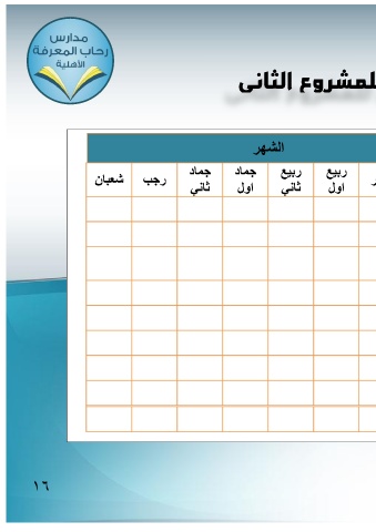 لمشروع الثاني الشهر رجب شعبان جماد جماد ربٌع ربٌع ر ثانً اول ثانً اول 16 121
