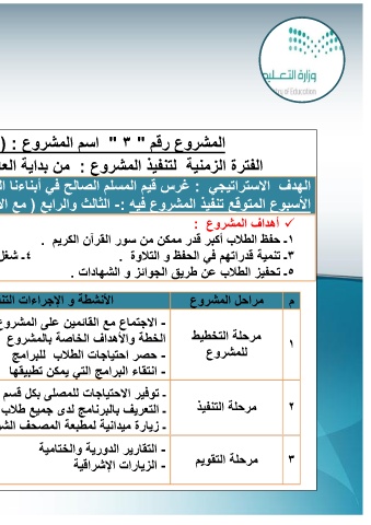 الأسبوع المتولع تنفٌذ المشروع فٌه -:الثالث والرابع ( مع الا
