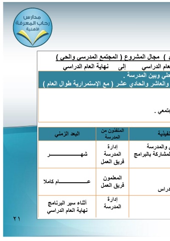 د ) مجال المشروع ( المجتمع المدرسً والحً )