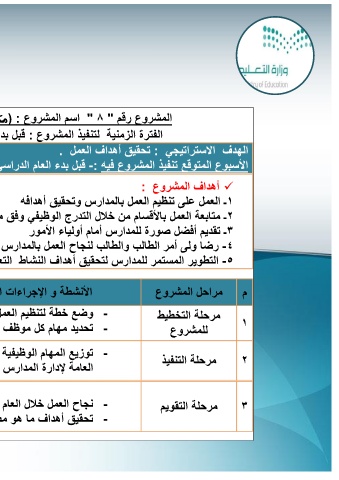 الأسبوع المتولع تنفٌذ المشروع فٌه -:لبل بدء العام الدراسً