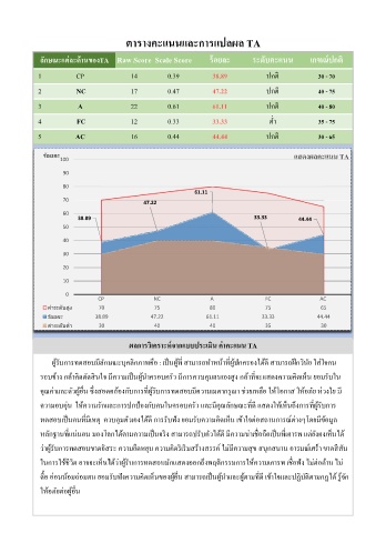ลักษณะแตละดานของTA Raw Score Scale Score รอยละ ระดับคะแนน เกฑณปกติ