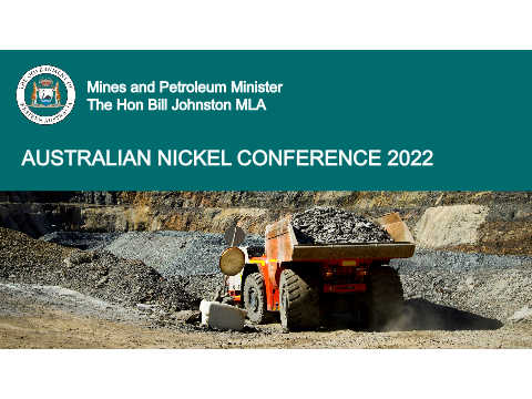 Mines and Petroleum Minister The Hon Bill Johnston MLA AUSTRALIAN NICKEL CONFERENCE 2022