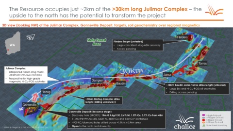 The Resource occupies just ~2km of the >30km long Julimar Complex – the
