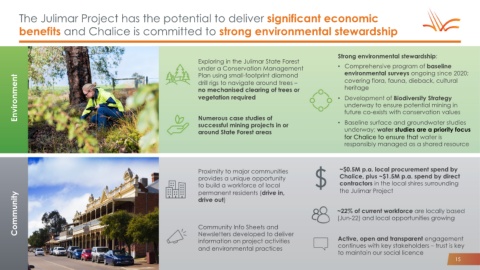 benefits and Chalice is committed to strong environmental stewardship