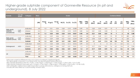 Higher-grade sulphide component of Gonneville Resource (in pit and