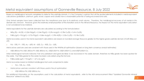 For additional information on the assumptions used in the calculation of metal equivalents , refer to the ASX announcement titled “Updated Gonneville Mineral