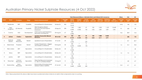 Australian Primary Nickel Sulphide Resources (4 Oct 2022)