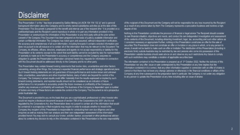 about its contents Any decision to rely on the information contained in this Presentation is the sole responsibility