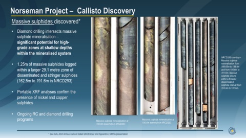 programs Massive sulphide mineralisation at Massive sulphide mineralisation at