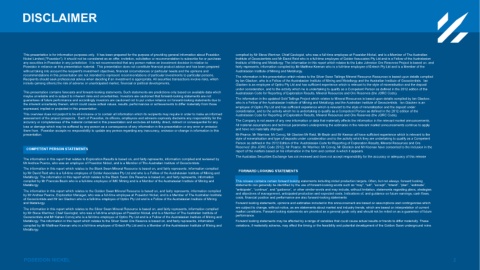 This presentation is for information purposes only. It has been prepared for the purpose of providing general information about Poseidon compiled by Mr Steve Warriner, Chief Geologist, who was a full-time employee at Poseidon Nickel, and is a Member of The Australian