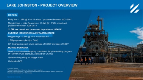2 Refer to ASX Announcement “Lake Johnston GR Engineering Study Completed” dated 27 January 2022.