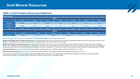 North and South Dam Resource as at 23 July 2021 (see ASX announcement “Windarra Gold Tailings Feasibility Study Highlights Robust Project” 23 Jul 2021).