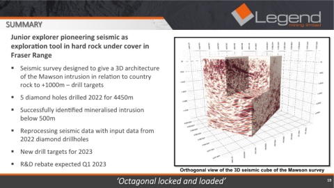 Orthogonal view of the 3D seismic cube of the Mawson survey