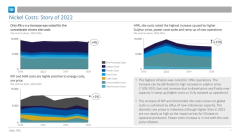 ore price Coke Costs • The highest inflation was noted for HPAL operations. The