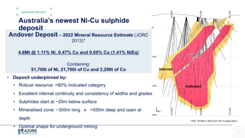 Andover Deposit – 2022 Mineral Resource Estimate (JORC