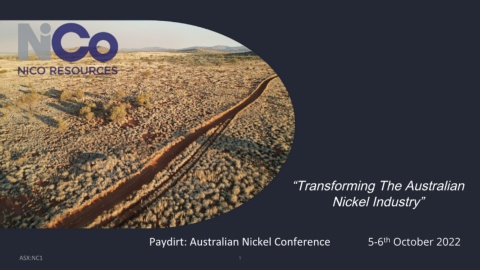 “Transforming The Australian Nickel Industry” Paydirt: Australian Nickel Conference 5-6 October 2022 th ASX:NC1 1