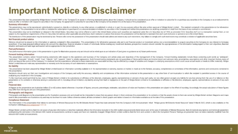 This presentation may not be reproduced, redistributed or passed on, directly or indirectly, to any other person, or published, in whole or in part, for any purpose without the prior written approval of Widgie Nickel Limited . The material contained in this presentation is for information
