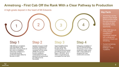 intercepts. Scoping Study on Armstrong deposit and Scoping Study. The Armstrong is set to reach 13,200t Ni.