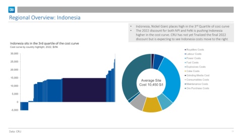 • Indonesia, Nickel Giant places high in the 3 Quartile of cost curve