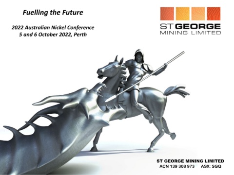 Fuelling the Future 2022 Australian Nickel Conference 5 and 6 October 2022, Perth ST GEORGE MINING LIMITED ACN 139 308 973 ASX: SGQ Ni-Cu-PGE ST GEORGE MINING LIMITED discovery at Mt ACN 139 308 973 ASX: SGQ Alexander, WA