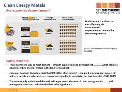 • The same supply and demand thematic will apply across the suite of clean energy metals …….. with