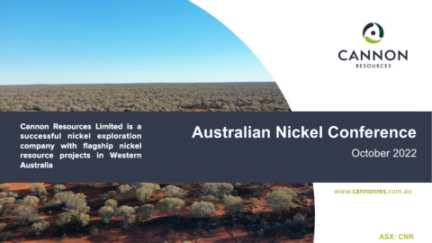 Cannon Resources Limited is a Australian Nickel Conference successful nickel exploration company with flagship nickel resource projects in Western October 2022 Australia ASX: CNR