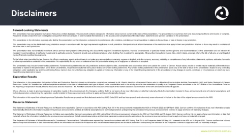 This presentation has been prepared by Cannon Resources Limited (Cannon). This document contains background information about Cannon current at the date of this presentation. The presentation is in summary form and does not purport to be all inclusive or complete.